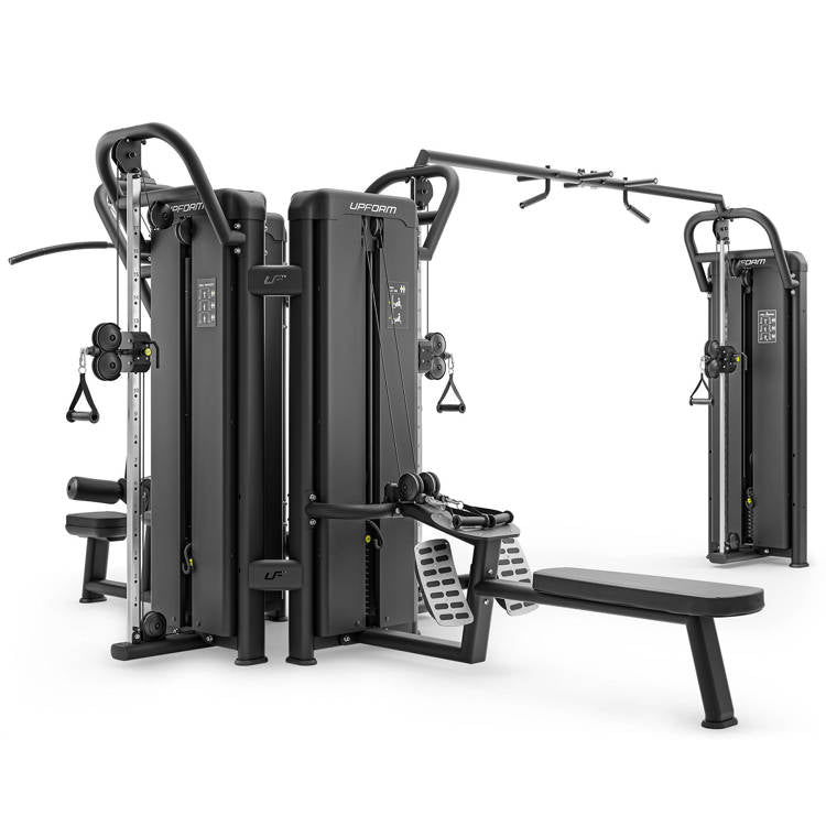 En T-bar row station giver dig mulighed for at udføre T-bar rows, der effektivt træner den øvre ryg, lats og skuldre. Du kan bruge forskellige greb og vægte for at varierer intensiteten.